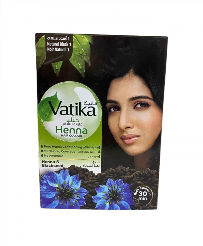 فاتيكا حناء ملونة للشعر حناء والحبة السوداء أسود طبيعي 1بدون أمونيا