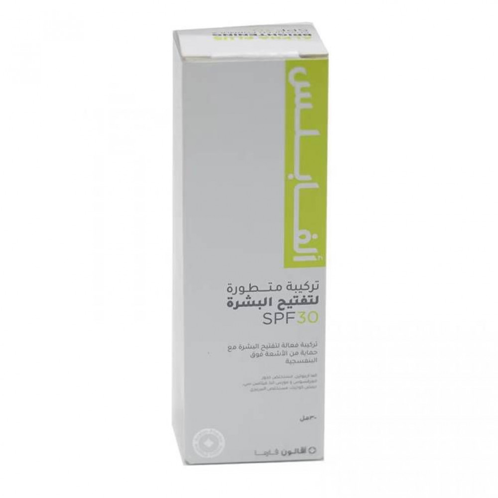 ألفابلس تركيبه متطوره لتفتيح البشره ويقلل من ظهور البقع الداكنه والتصبغات ويحمي البشره من الأشعه فوق البنفسجية ويعمل على توحيد لون البشره 30مل